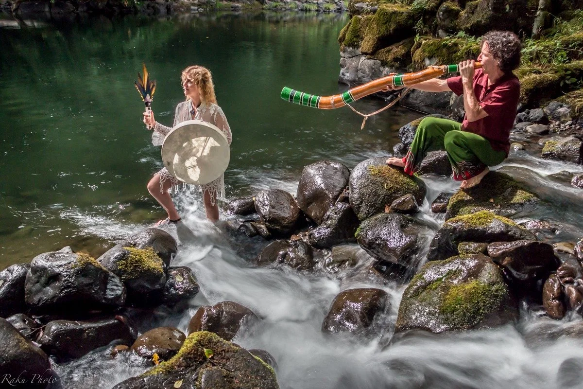 Live sacred sound healing by Aiyana and Tom, moving through the space to play instruments directly over and around your body—each sound wave infused with Divine Love and precise energetic intention